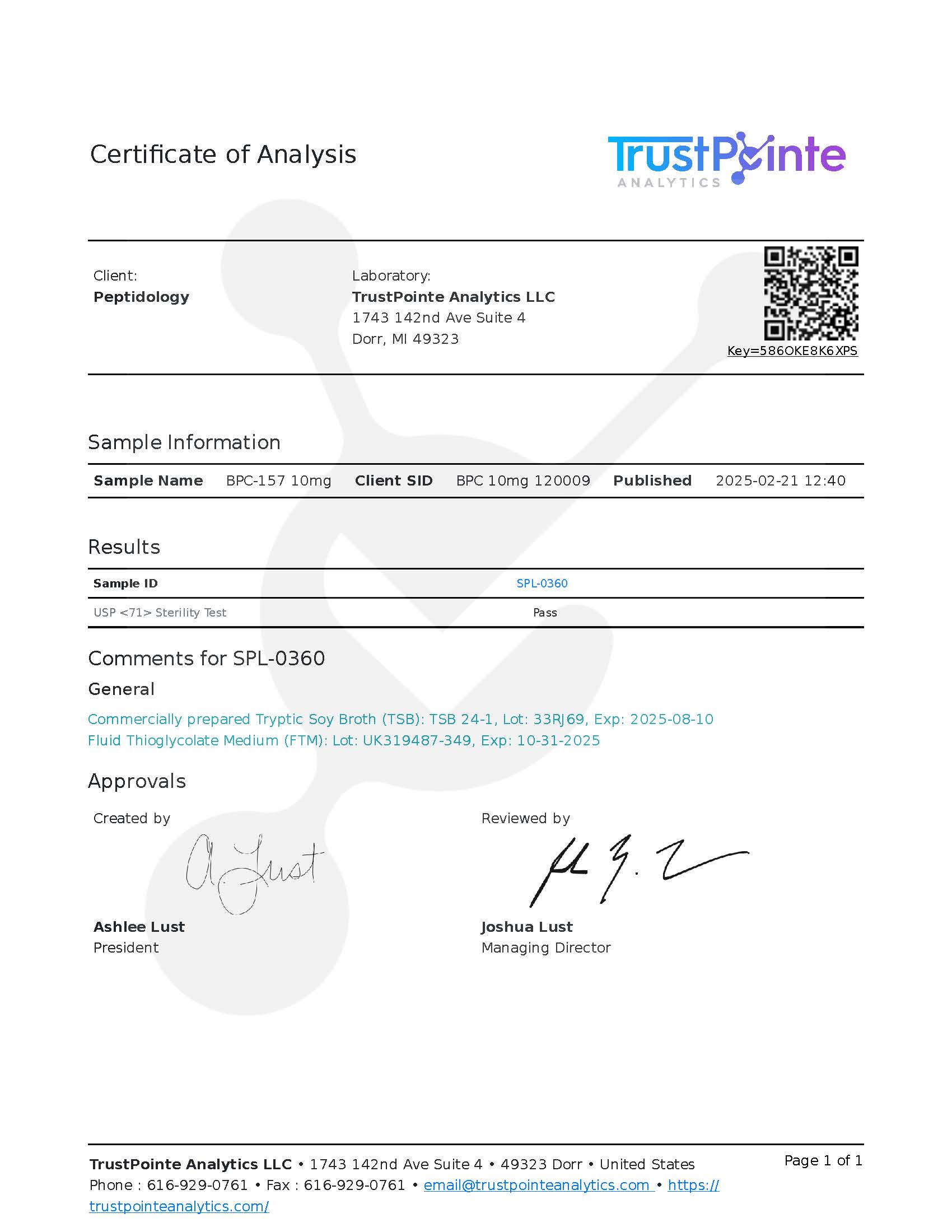At every step, we prioritize quality by conducting rigorous third-party testing on all our products. These tests focus on four key characteristics—identity, purity, sterility, and endotoxicity—ensuring that each batch meets the highest standards for safety and performance, with independent third-party Certificates of Analysis (COAs) to verify our commitment to excellence.